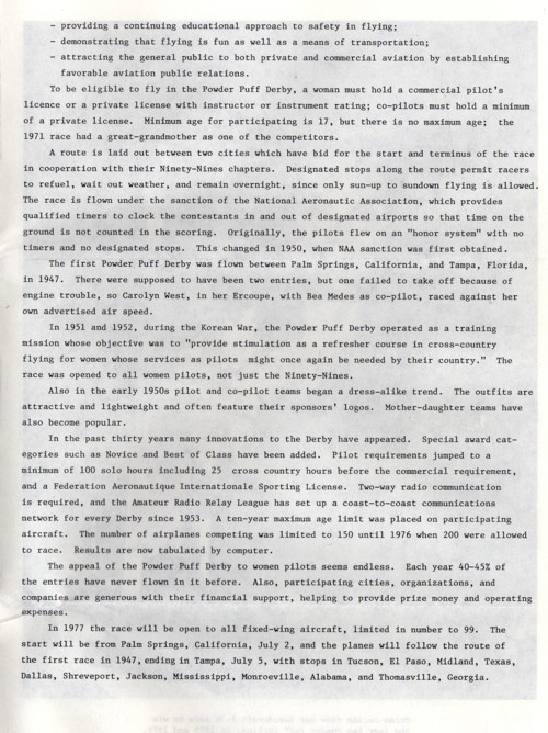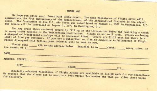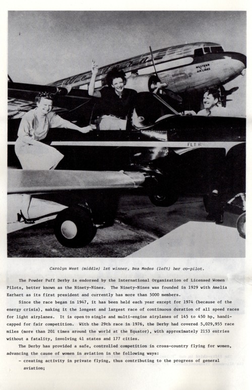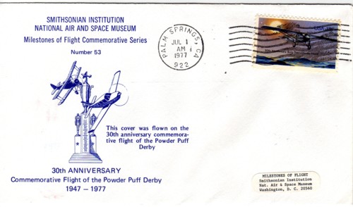 | The Smithsonian Institution National Air and Space Museum issued this cover in their Milestones of Flight Commemorative Series, #53, to honor the 30th Anniversary of the Powder Puff Derby.