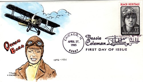 The illustration is a colorized version of a photograph of Bessie Coleman.