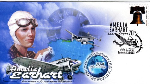 Pictorial cancel: Amelia Earhart Last Flight 70th Anniversary Station, Burbank, CA 91503