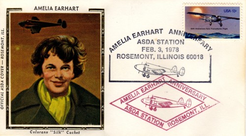 This Colorano "Silk" Cachet is an Official ASDA Cover from Rosemont, Illinois, commemorating Earhart's transatlantic flight.