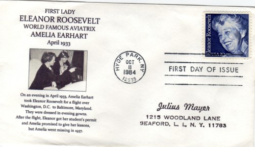 This first day cover was for the Eleanor Roosevelt stamp issued on 11 October 1984.