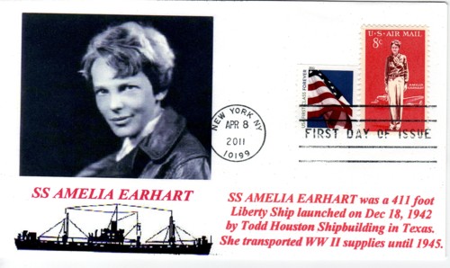 The SS Amelia Earhart was a 411-foot Liberty Ship launched on Dec 18, 1942 by Todd Houston Shipbuilding in Texas. She transported WWII supplies until 1945.