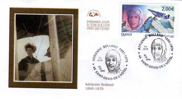 This cachet was produced in French. Adrienne BOlland was born in 1895 and died in 1975. No explanatory text on the back.