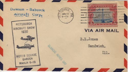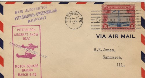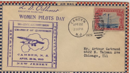 | This cover is from the Tri-State Aircraft Show, held in Camden, NJ from April 18-26, 1930. (THe three states are Delaware, New Jersey and Pennsylvania). April 22, 1930 was Women Pilots Day.
