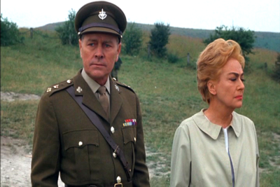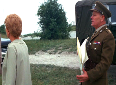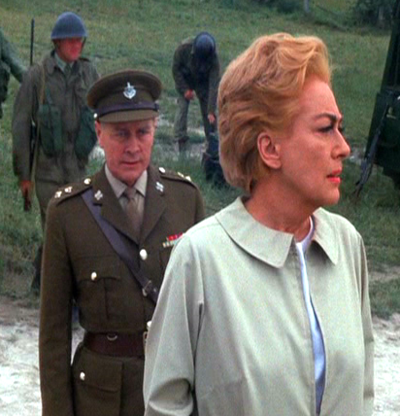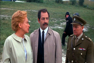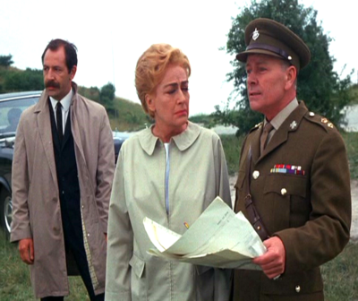 The movie begins with three young men going potholing (spelunking) in the English countryside. They come across a gi-normous cave, and deep within its bowels lives the missing link, Trog. He kills one of the young men. Trog is captured and brought to Doctor Brockton's research institute, where she tries to civilize him. All goes well, until the evil Sam Murdock (Michael Gough) trashes the lab and then lets him out of his cage, presumably he'll be blamed for the lab destruction. Instead, Trog breaks out of the house entirely, and kills Murdock. He then kills a few more people - who attack him first - kidnaps a little blonde girl because she reminds him of a doll that Dr. Brockton (Joan Crawford) had given him, and returns to his cave. The populace of the nearby village are furious with Brockton, who points out in vain that everything was working fine until Murdock intervened. Colonel Vickers comes with his troops, and Inspector Greenham (Bernard Kay) is there as well. Colonel Vickers asks Dr. Brockton to tell him more about the cave, and shows her the charts. He makes the decision that they'll blast a hole into the lower part of the cave. The little girl's mother comes to berate Dr. Brockton, and Inspector Greenham and Colonel Vickers concur. Dr. Brockton goes into the cave and retrieves the girl. She then asks Vickers to let her go in with her hypogun, but he refuses. Trog is to be killed. That's Simon's final scene. The action inside the cave is led by a different military man - with no lines, just making gestures while giving orders. And poor Trog is killed.